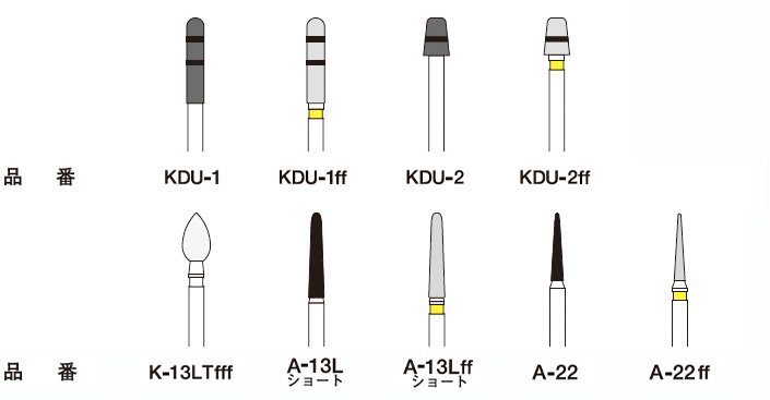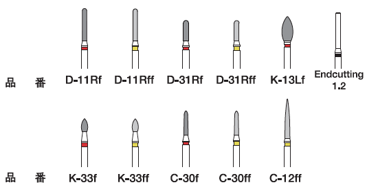 ダイヤモンドバーの粒子は、接着に有利なようにファインならびにスパーファインとしている。 |