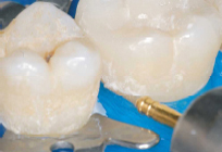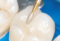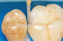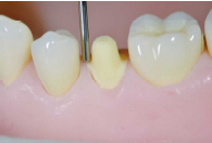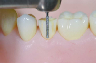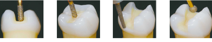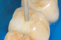 CAD/CAMインレー修復の咬合面窩洞形成、咬合面に水平にRKA-15/16を動かすことで、テーパー、窩底形態など、最適な窩洞外形を付与することができる。概形成後、ダイヤモンド粒子の細かいRKA-15ff/16ff/18ffを用いて、窩洞内に残っている角を丸めるように形成の仕上げを行う。
