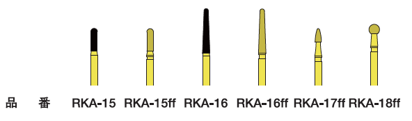 バーの先端がラウンドエンド、テーパー角度は4°に設計されています。RKA-15では形成しにくいインレーの隣接面窩洞等の形成に達します。 |