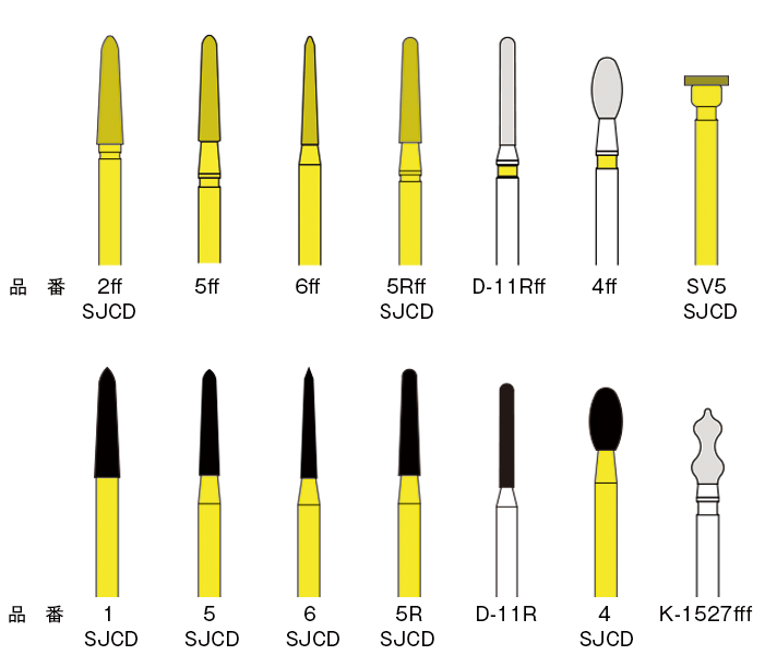 CAD/CAM補綴物のマージン形態に適したシャンファー形状を持つSJCDバーを中心に構成しています。