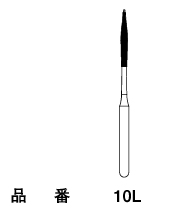 根管上部形成用(FG)ダイヤモンドバーです。 MHアクセスバー(CA)のNo.1とNo.2を組み合わせて形状で、5倍速コントラを用いて10,000回転以下で使用します。 ゲイツドリルNo.1で開けた根管を誘導路として、New MHアクセスバー10Lで根管上部形成を行います。 |