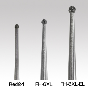 深い位置にあるポストを削り除去する場合、全長が25mm、29mmと長く、しかもネック部の細長いFH-6XL、FH-8XL-ELが有効です。 |