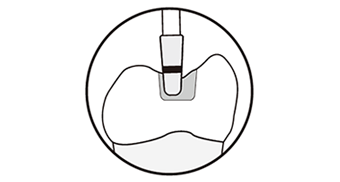 先端から2mmの部分に付けた0.5mm幅の黒色線を目安に窩洞形成を行うことで、CAD/CAMインレーに必要な厚みを確保することができます。また、スキャナーで読み込みやすいなめらかな形状が得られます。