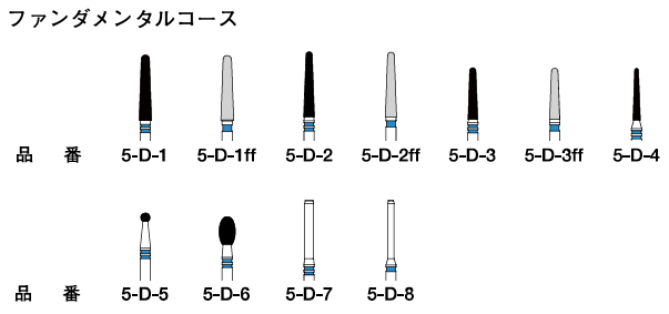 特徴nmg プレップバーは、メタルクラウン、セラモメタルクラウン、オールセラミッククラウン、CAD/CAMクラウン、パーシャルベニアクラウンなど、あらゆる種類のクラウンに使用できる、面形成を基準とした支台歯形成用のバーセットです。セットは14本からなり、様々に変化する臨床的な環境に対応できます。バーは軸面用として7本、咬合面、舌面用として3本、フィニッシュライン部の最小量の削除用、咬合面のイスムス用、咬合調整用、抵抗形態としての隣接面グルーブ用にそれぞれ1本の計14本です。