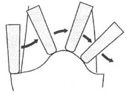 しかしこのバーシステムでは、バーの先端に20°、30°の湾曲を与えることでバーを歯軸と平行にして形成するだけで遊離エナメルや凸凹のないショルダーマージンの形成ができます。