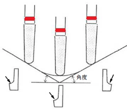 スキャロップに対して垂直に形成しなければ均一なショルダー面を得られず、熟練が必要で口腔内では難しい。 |